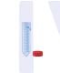 Screw cap tube, 50 ml, 114 x 28 mm, conical base, polypropylene, 2-color printed graduations and writing space, red cap included, 25 pcs./bag.